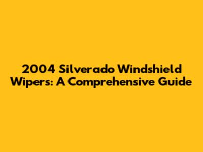 Common 2004 Silverado Windshield Wiper Problems