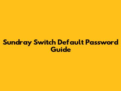 Sundray Switch Default Password Guide