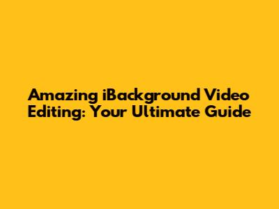 Amazing IBackground Video Editing: Your Ultimate Guide