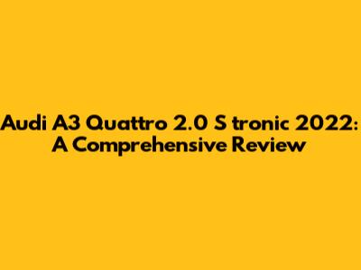 In conclusion, the 2022 Audi A3 Quattro 2.0 S tronic stands out as a compelling option in the luxury compact car segment. Its combination of a potent engine, advanced all-wheel-drive system, and sophisticated interior make it a joy to drive and own. While it may have a few drawbacks, such as a higher price point and limited rear seat space, its strengths far outweigh its weaknesses. Whether you're looking for a stylish daily driver or a fun weekend car, the Audi A3 Quattro delivers on all fronts. Its performance capabilities, combined with its luxurious features and advanced technology, make it a top contender in its class. So, if you're in the market for a premium compact car that offers a thrilling driving experience and a touch of elegance, the Audi A3 Quattro 2.0 S tronic 2022 is definitely worth a closer look. Its reputation for quality, performance, and innovation makes it a smart choice for discerning drivers who demand the best. From its sleek exterior design to its meticulously crafted interior, every aspect of the Audi A3 Quattro is designed to impress. So, go ahead and take it for a spin – you might just find your next dream car.