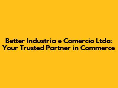 Hey guys! Let's dive into the world of Better Industria e Comercio Ltda, a company that's been making waves in the industry. If you're looking for a reliable partner to help your business thrive, you've come to the right place. We're going to explore what makes Better Industria e Comercio Ltda stand out and how they can be a game-changer for your operations. Get ready to discover a company committed to quality, innovation, and client satisfaction.