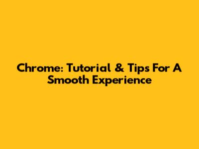 Chrome: Tutorial & Tips For A Smooth Experience