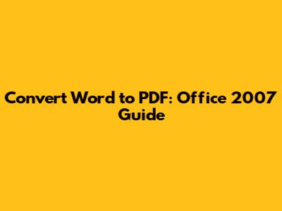 Best Practices for Converting Word to PDF in Office 2007