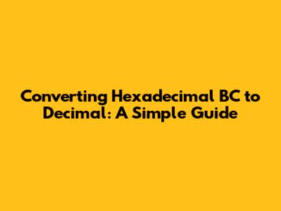 Hey guys! Ever stumbled upon the hexadecimal number "BC" and wondered what its decimal equivalent is? Well, you're in the right place! We're going to break down how to convert the hexadecimal value "BC" into its decimal form in a way that's super easy to understand. No complicated jargon, just straightforward explanations! This guide will walk you through the process step-by-step, ensuring you grasp the concept without any headaches. Let's dive in and unlock the secrets of hexadecimal to decimal conversion together. Understanding this conversion is fundamental in various fields, especially in computer science and digital electronics, where hexadecimal notation is frequently used to represent binary values in a more compact and human-readable form. By the end of this article, you'll be able to confidently convert any two-digit hexadecimal number to its decimal equivalent. So, grab a coffee, sit back, and let's get started. This will also give you an understanding of how to easily apply the same process to convert other hexadecimal values.