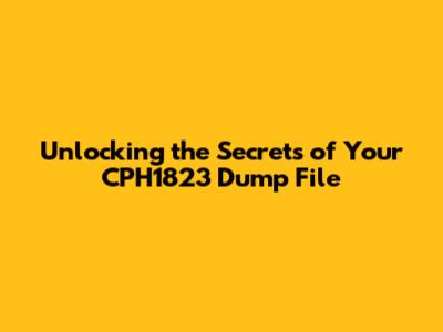 Why is the CPH1823 Dump File Important for Troubleshooting?