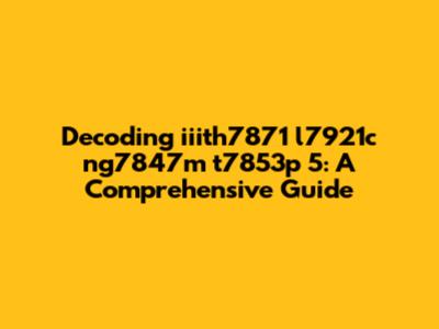 When we begin to dissect the sequence iiith7871 l7921c ng7847m t7853p 5, we can see it's composed of alphanumeric characters grouped into distinct blocks. The first block, "iiith7871," includes a mix of lowercase letters and numbers, potentially indicating a combination of identifiers or a coded message. The "iiith" part might be an abbreviation or an initialism, perhaps referring to an organization, project, or specific term. The "7871" could be a numerical identifier, a version number, or part of a more complex coding system. Together, this block sets the stage for further examination of the other segments.