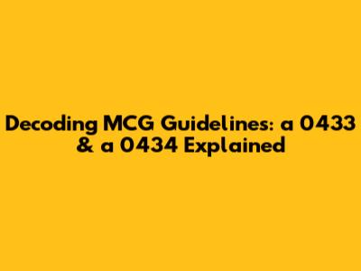 Hey there, healthcare enthusiasts! Ever found yourself scratching your head over MCG Guidelines a 0433 and a 0434? Don't worry, you're not alone! These guidelines are essential in the healthcare world, influencing everything from patient care to insurance approvals. This article will break down these guidelines in plain English, making them easier to understand and apply. We'll explore what these guidelines cover, why they're important, and how they impact everyday healthcare practices. So, grab a coffee, and let's dive into the fascinating world of MCG!