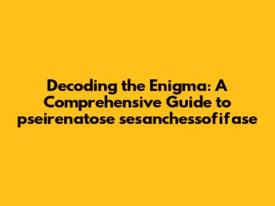 Unraveling the Mystery of pseirenatose sesanchessofifase