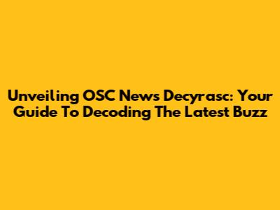 Unveiling OSC News Decyrasc: Your Guide To Decoding The Latest Buzz