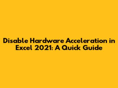 Having trouble with display issues or performance hiccups in Excel 2021? One potential solution is to disable hardware acceleration. This feature, while generally helpful, can sometimes cause conflicts with certain graphics cards or drivers, leading to visual glitches or sluggish performance. In this comprehensive guide, we'll walk you through the steps to disable hardware acceleration in Excel 2021, offering a detailed explanation of why you might want to do so and what to expect afterward. We'll also explore alternative troubleshooting steps if disabling hardware acceleration doesn't resolve your issues. So, if you're ready to optimize your Excel experience, let's dive in!