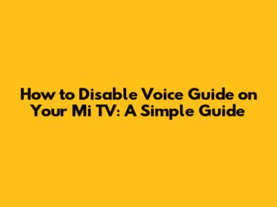 Step-by-Step Guide to Turn Off Voice Guide on Mi TV