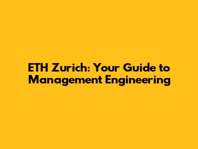 What Does the ETH Zurich Management Engineering Program Involve?