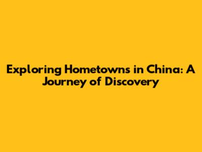 Exploring Hometowns In China: A Journey Of Discovery