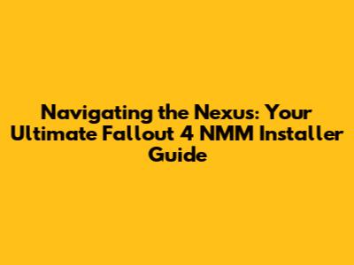What's up, wasteland wanderers? Today, we're diving deep into something super important for any serious Fallout 4 player looking to spice up their game: modding. And when we talk about modding Fallout 4, one tool often comes up: the Nexus Mod Manager (NMM). If you've ever felt overwhelmed by the sheer number of mods out there and how to get them into your game without breaking everything, you're in the right place, guys. We're going to break down the Fallout 4 NMM installer process step-by-step, making it as easy as pie. Forget those confusing forums and cryptic guides; this is your friendly, no-nonsense walkthrough to getting your game looking and playing exactly how you want it. Ready to transform your Commonwealth? Let's get started!