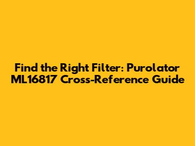 Hey guys! Ever been stuck trying to find a replacement oil filter? It's a common headache, trust me. Today, we're diving deep into the Purolator ML16817 cross-reference world. If you've been scratching your head about which filter is the right fit, you've come to the right place. This guide is your ultimate resource, offering a clear and concise breakdown of everything you need to know about the ML16817 and its compatible alternatives. We'll cover what a cross-reference is, why it's important, and, most importantly, which filters you can confidently swap in. Get ready to become a filter pro! Understanding the Purolator ML16817 cross-reference is essential for anyone who wants to keep their engine running smoothly and efficiently. We will show you the exact equivalent filters you may use without worrying about any potential engine failure.