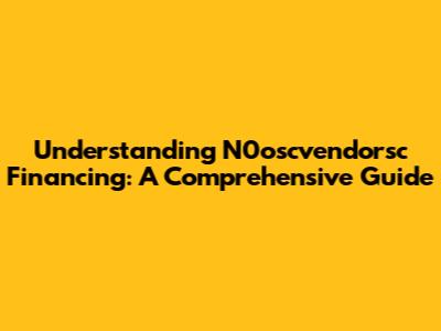 Understanding N0oscvendorsc Financing: A Comprehensive Guide