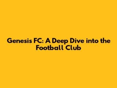 Genesis FC: A Deep Dive Into The Football Club