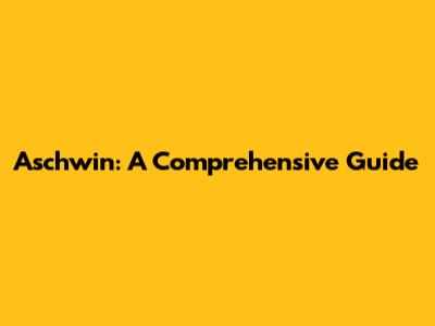 Aschwin: A Comprehensive Guide