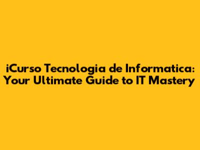 Hey guys! Ever felt lost in the vast world of Information Technology? Thinking about diving into IT but not sure where to start? Well, you're in the right place! This guide is all about iCurso Tecnologia de Informatica, and trust me, it's a game-changer. We're going to break down everything you need to know, from what iCurso is, to how it can help you build a successful IT career. So, buckle up, because we're about to embark on an exciting journey into the heart of IT education!
