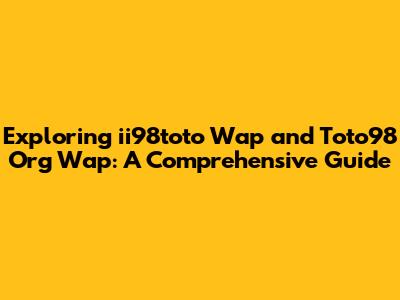 Optimizing Your Experience on ii98toto Wap and Toto98 Org Wap