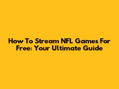 How To Stream NFL Games For Free: Your Ultimate Guide