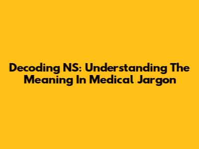 Decoding NS: Understanding The Meaning In Medical Jargon