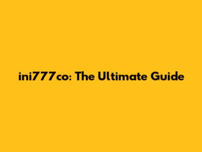 Ini777co: The Ultimate Guide