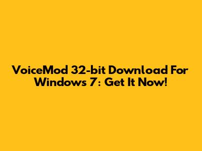 VoiceMod 32-bit Download For Windows 7: Get It Now!