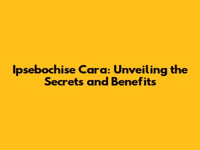 Ipsebochise Cara: Unveiling The Secrets And Benefits