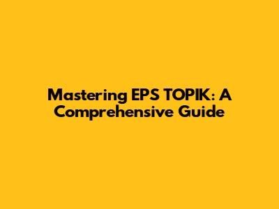 Mastering EPS TOPIK: A Comprehensive Guide