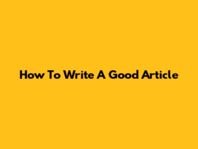 How To Write A Good Article