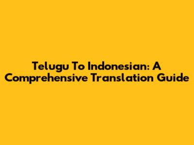Telugu To Indonesian: A Comprehensive Translation Guide