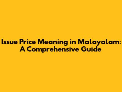 Issue Price in Malayalam: A Closer Look
