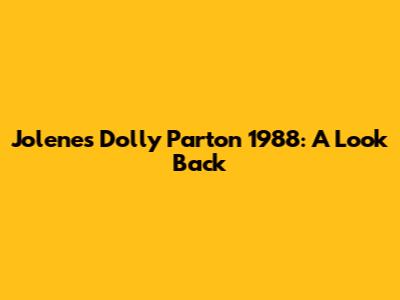 Jolene's Dolly Parton 1988: A Look Back