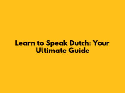 So there you have it – your ultimate guide to learning to speak Dutch! With dedication, practice, and the right resources, you'll be chatting away in Dutch in no time. Veel succes! (Good luck!)
