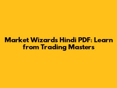 Accessing the Market Wizards Book in Hindi PDF