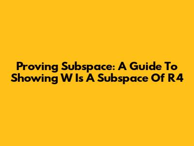 Proving Subspace: A Guide To Showing W Is A Subspace Of R4