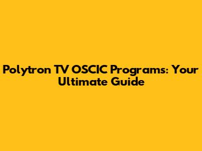 Polytron TV OSCIC Programs: Your Ultimate Guide