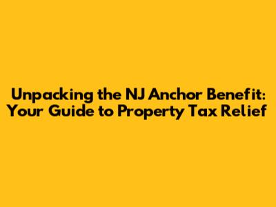 Hey everyone! Let's dive deep into the NJ Anchor Benefit, a super important program for New Jersey homeowners and renters looking to ease the property tax burden. We're talking about real money back in your pocket, guys, and understanding how it works is key to making sure you get the relief you deserve. This isn't just some abstract government program; it's designed to provide tangible financial support to New Jersey residents who are footing the bill for property taxes. Whether you own your home or rent, Anchor can potentially put some cash back into your bank account. We'll break down who qualifies, how much you can get, and the simple steps you need to take to apply. So, grab a coffee, get comfy, and let's get this sorted!