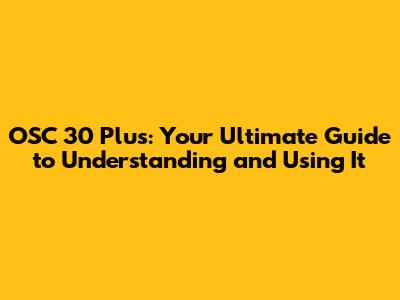 Unveiling OSC 30 Plus: What Exactly Is It?