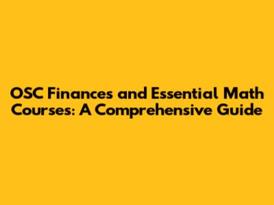 OSC Finances And Essential Math Courses: A Comprehensive Guide