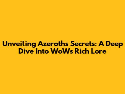 Unveiling Azeroth's Secrets: A Deep Dive Into WoW's Rich Lore