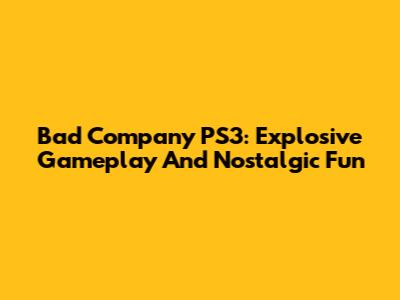 Bad Company PS3: Explosive Gameplay And Nostalgic Fun