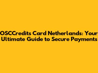 How to Get Your OSCCredits Card in the Netherlands
