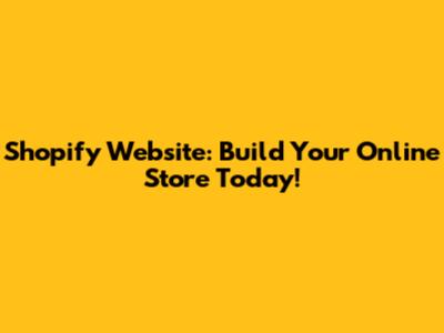 Shopify Website: Build Your Online Store Today!