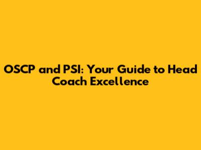 Why OSCP and PSI Matter for Head Coaches