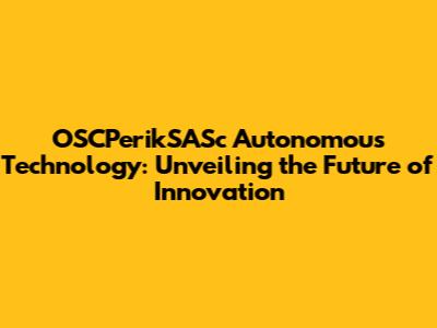 OSCPerikSASc Autonomous Tech: The Future Is Here!