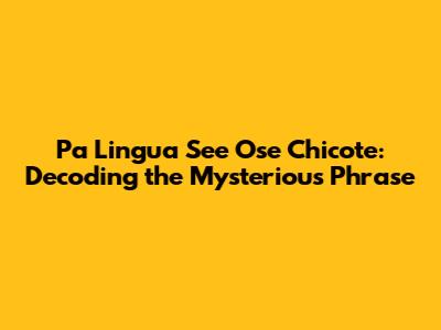 Pa Lingua See Ose Chicote: Decoding The Mysterious Phrase
