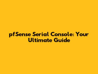 Hey guys! So, you're diving into the awesome world of pfSense, huh? That's fantastic! Today, we're going to tackle something super important, especially when things get a bit hairy or you just want that rock-solid, low-level access: the pfSense serial console. Trust me, understanding this can be a lifesaver, whether you're setting up a new firewall, troubleshooting a tricky network issue, or just like to have all your bases covered. We'll break down why it's so cool, how to get it set up, and what kind of magic you can perform with it. So grab a coffee, get comfy, and let's get this network party started!