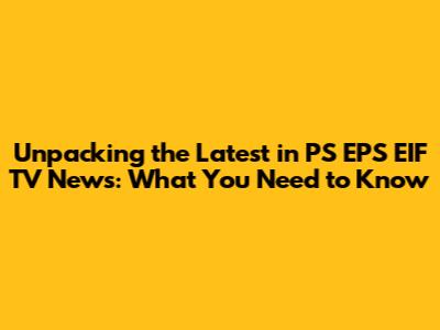 Why Staying Informed on PS EPS EIF TV News Matters